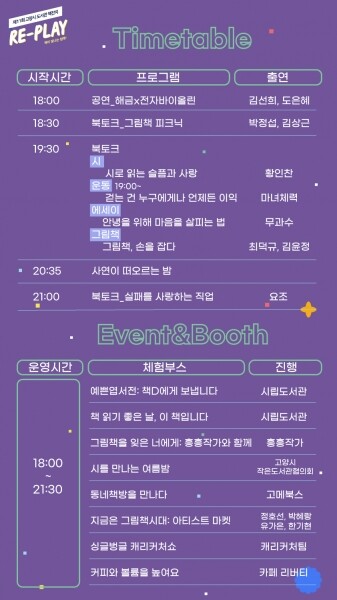 책으로 만나서 우리의 일상이 다시 재생된다는 의미를 담아 라디오 방송을 컨셉으로 행사가 진행된다.