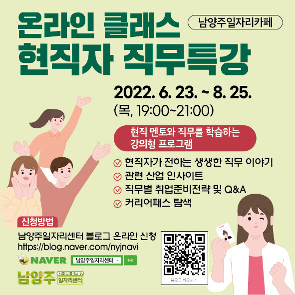 신청자격은 남양주시에 거주하는 만18세이상 39세이하 청년 구직자로 남양주일자리센터 블로그를 통해 온라인 접수가 가능하다.
