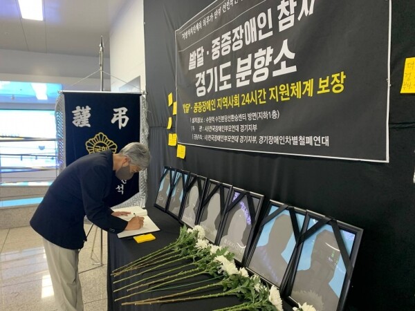 ?㈔전국장애인부모연대 경기지부, 경기장애인차별철폐연대가 마련한 분향소로 49재인 7월 10일까지 분향소가 마련되어 있을 것이다.