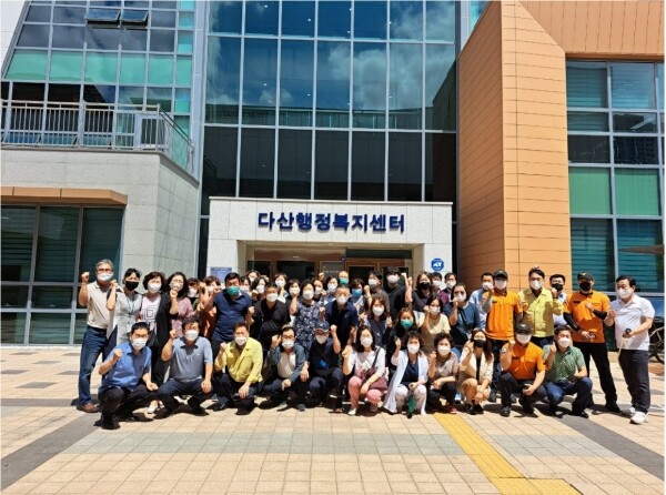 이날 훈련에는 센터에 상주하고 있는 전 직원을 비롯해 다산1동 통장협의회 회원들이 함께 참여했으며 본격적인 훈련에 앞서 다산1동 자위소방대 편성 내용 및 대응 매뉴얼에 대한 설명, 실제 화재 사례 소개, 소화기 사용법, 옥내 소화전 사용법에 대한 영상 교육이 진행됐다.