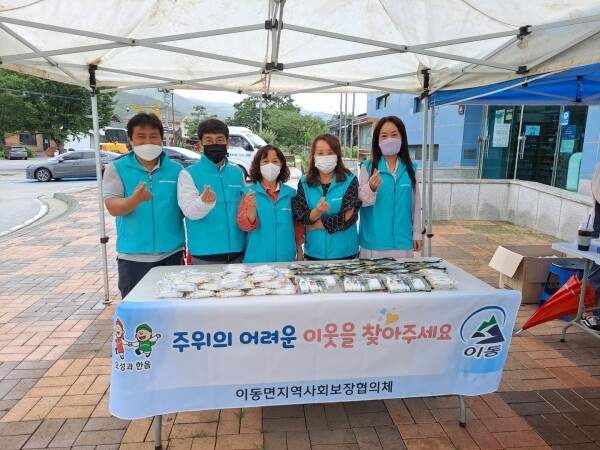 이번 캠페인에서 이동면지역사회보장협의체는 ‘주위의 어려운 이웃을 찾아 주세요’라는 슬로건으로 홍보물품을 배부했다.