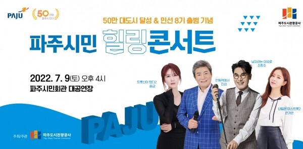 파주시의 인구 50만 대도시 진입을 축하하는 의미로 파주시민, 문화소외계층 등 지역 내 다양한 이웃을 초청하는 무료공연으로 기획됐으며 120분간 누구나 편하게 즐길 수 있는 흥겨운 명품 트로트의 향연이 펼쳐질 예정이다.