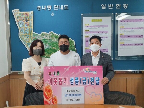 이날 기탁된 성금은 사회복지공동모금회를 통해 송내동에 거주하는 취약계층 및 복지사각지대에 놓인 가구를 위해 사용될 계획이라고 전했다.