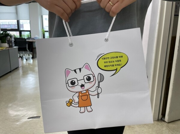 메모지에는 식중독 예방 수칙과 응급처치 요령이 표기되어있고 쇼핑백에는 식중독 예방수칙과 ‘우리 업소는 식중독 예방수칙을 지켜요’라는 문구가 인쇄되어 있다.