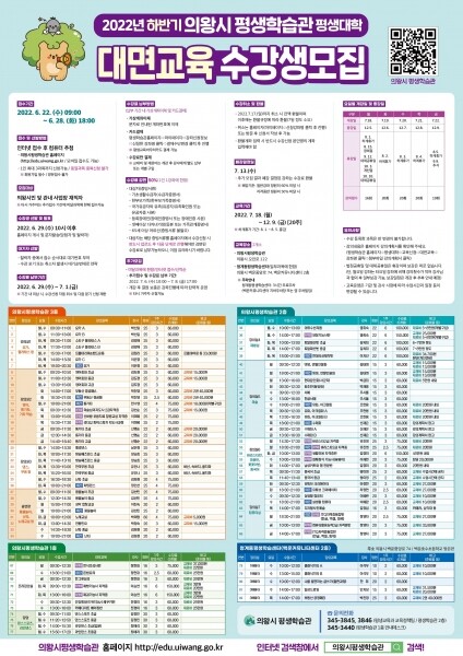 시 평생대학 담당자는 “코로나19로 상반기에 운영하지 못했던 강좌와 시민들이 희망하는 강좌를 확대 운영해, ‘배움의 왕, 행복의 왕, 평생학습도시 의왕’을 만들기 위해 최선을 다하겠다”고 전했다.