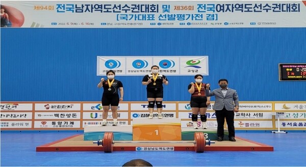 박희진 선수는 지난 9일 경남, 고성군 역도전용경기장에서 열린 전국여자 선수권대회에서 여자일반부 76㎏급 인상서 91㎏을 들어올리며 1위에 오른 뒤, 용상에서는 113㎏, 합계 204㎏을 기록하며 전부 1위를 차지해 3관왕에 오르며 그동안의 훈련과 노력으로 금빛 결실을 이뤘다.