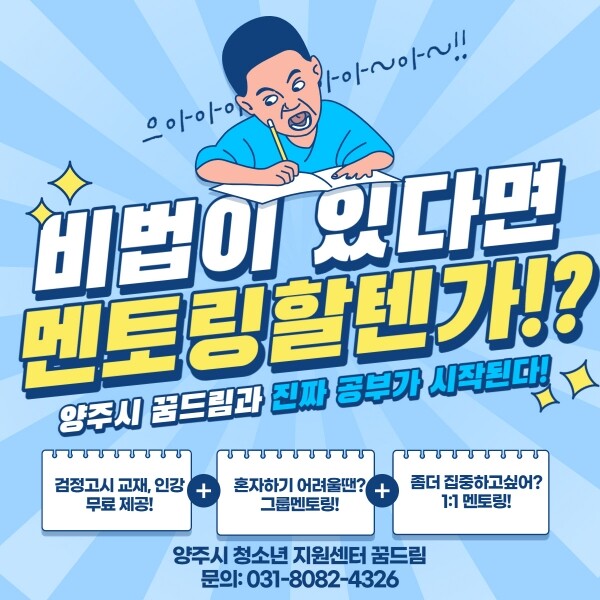 센터 관계자는 “양질의 멘토링을 운영함으로써 학교 밖 청소년들이 안정적으로 학력을 취득할 수 있도록 돕고 나아가 학교 밖 청소년들의 건강한 사회 진출 및 자립에 도움이 될 수 있도록 최선을 다하겠다”고 말했다.