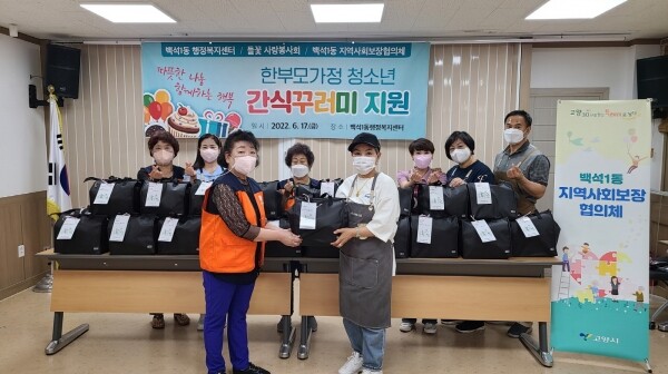 이번 행사는 고양시의 자원봉사 단체인 들꽃 사랑봉사회가 경기도 자원봉사센터가 시행하는 공모사업에 선정되어 마련 된 것으로백석1동 지역사회보장협의체의 특화사업으로 연계해 청소년 맞춤형‘간식 꾸러미’를 제작해서 한부모 가정 30가구에 전달하고 안부를 확인했다.