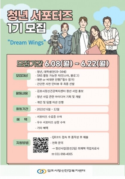 청년 서포터즈 ‘Dream Wings’는 청년들에게 정신건강에 대한 올바른 정보를 제공하고 정신질환자에 대한 인식 개선과 센터에서 주관하는 청년 사업과 관련된 홍보를 목적으로 하고 있다.