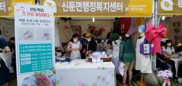 또한 신둔면은 스카프와 손수건을 펜으로 디자인하는 체험프로그램으로 시민 참여율 높았으며 국악기 해금愛 동아리의 무대공연도 준비해 동아리 참여 활성화에도 기여했다.