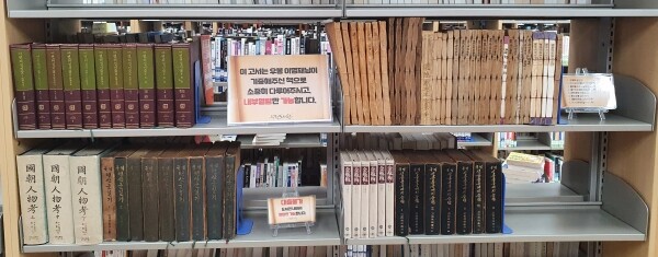 기증 서가는 대출은 불가하지만 2층 일반자료실에서 자유롭게 열람할 수 있다.