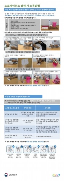 또한 환자의 구토물에 오염된 물품이나 접촉한 환경 및 화장실 등에 대해 소독이 권장된다.