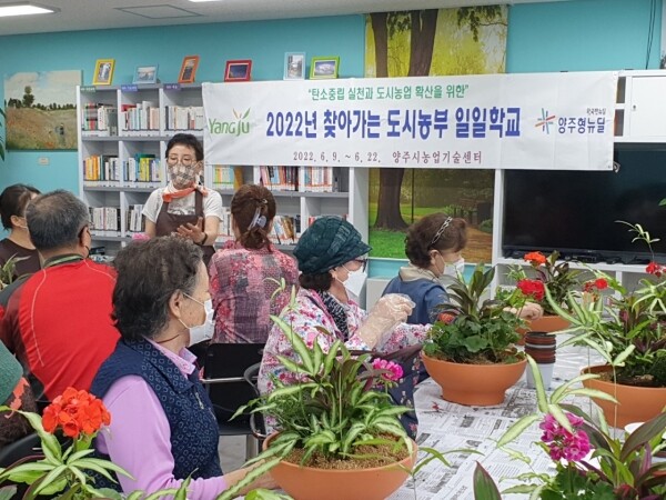 양주시농업기술센터는 도시민의 농업활동을 장려해 도심 속 농업공동체를 형성하고 녹색 생활공간 조성으로 삶의 질 향상에 기여하고자 다양한 도시농업 체험 및 교육 프로그램을 운영 중이며 도시농업연구회와 마스터가드너 등 도시농업전문가 육성에도 집중하고 있다.
