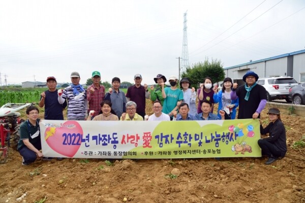이에 최병조 가좌동장은 “무더운 날씨에도 불구하고 어려운 이웃을 돕기 위해 감자수확 및 나눔 행사에 참여해 주신 통장님들께 감사드린다”며 “수확한 감자는 관내 약자 및 소외계층에게 잘 전달하겠다”고 전했다.