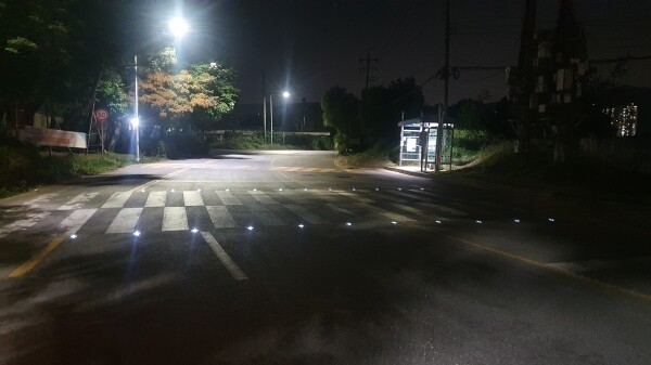 LED 활주로형 표지병은 비행기 활주로처럼 횡단보도 양옆을 따라 일정한 간격으로 설치하는 LED조명시설로 야간 운전자가 횡단보도를 쉽게 인식할 수 있어 심야에 신호가 없는 횡단보도를 건너는 보행자 안전 확보에 효과적이다.