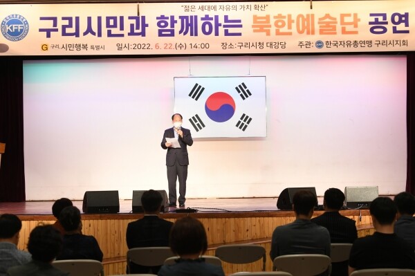 한국자유총연맹 구리시지회 김석진 회장은 공연에 앞서 “호국보훈의 달을 맞아 계획된 오늘 공연이 시민들에게 북한의 문화를 소개해 한민족이라는 동질감을 일깨우고 통일에 대한 공감대를 형성하는데 도움이 되길 바란다”며 막을 열었고 차종회 부시장은 “오늘 초청공연이 남과 북의 문화적 이질감을 해소하는 뜻깊은 기회가 될 것”이라며 “북한이탈주민의 안정적 정착을 위해 모두의 관심과 노력이 필요하다”고 말했다.