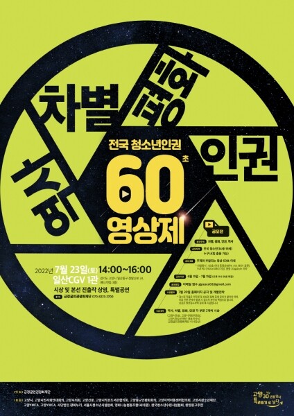 시 관계자는 “청소년 인권 60초 영상 공모전을 통해 우리 사회 전반의 인권 의식을 높이고 평화와 화합을 도모하는 계기가 되길 바란다”고 말했다.