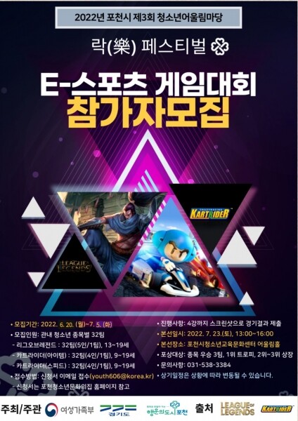 리그오브레전드 종목은 관내 13세~19세 청소년이, 카트라이더 종목은 관내 9세~19세 청소년들이 참여할 수 있다.