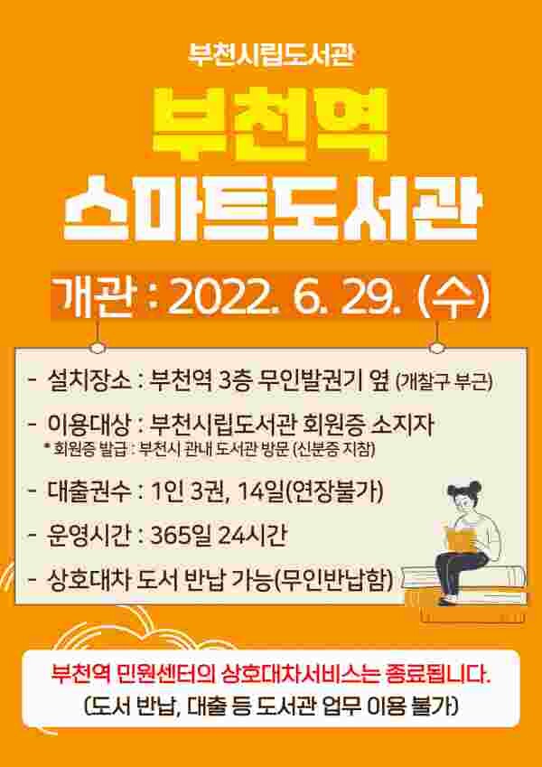 한편 이번 부천역 스마트도서관 운영과 함께 그동안 부천역 민원센터에서 제공하던 상호대차서비스는 중단된다.