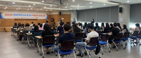44개 장애인복지시설 및 기관의 종사자 50명이 참석한 교육에서는 전문강사의 강의로 장애인복지시설 보조사업비 예산 집행과 변경된 법령 사항에 대해 설명하고 지도점검 주요 지적사례 등을 안내했다.