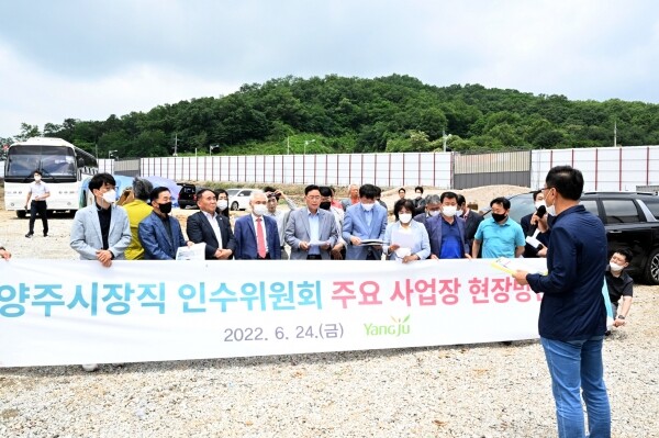 이날 현장 확인에는 강수현 당선인과 김상헌 인수위원장을 비롯한 인수위원, 관계 공무원 등이 참석해 전철 7호선 104·201정거장, 옥정 물류센터 1·2부지, 남면 르네상스센터, 삼표산업 양주사업소 채석단지, 양주관아지 등 7곳을 순차적으로 돌며 현장을 꼼꼼히 살폈다.