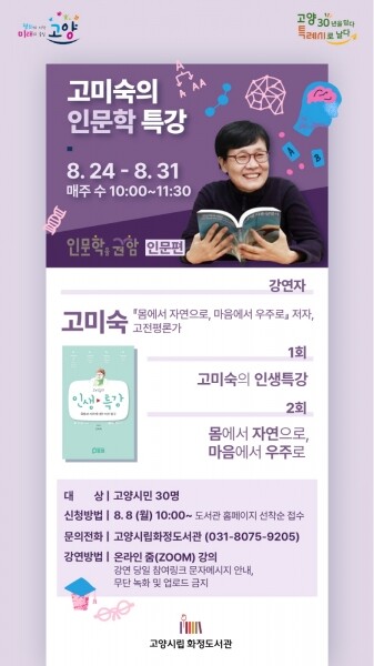 8월에는 고전평론가 고미숙 작가의 인문학 특강이 열린다.