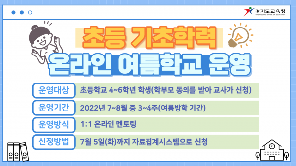 온라인 여름학교는 초등학생 기초학력 향상을 돕고 학습 습관을 길러주고자 기초학력 진단 보정 시스템으로 학생별 맞춤형 학습을 지원하는 방학 프로그램이다.
