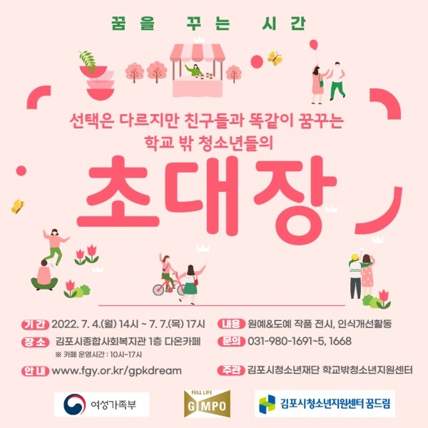 또한 꿈드림 ‘별하’ 자치기구 청소년들이 학교 밖 청소년 인식 제고를 위해 캔버스 액자 전시 응원메시지 남기기 등 인식개선 활동을 함께 진행한다.