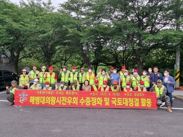 이날 전우회 회원 30여명은 보트를 동원해 수중에 쌓인 각종 쓰레기와 오염물질 수거활동을 펼치는 한편 수변 환경 정화활동을 동시에 진행했다.