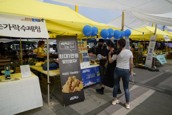 경기도주식회사는 지난 25일 가평 잣고을 광장에서 열린 ‘사회적 경제x두네토 함께마켓’에서 부스를 설치하고 가평 시민들에게 배달특급을 알리는 현장 홍보를 진행했다고 27일 밝혔다.