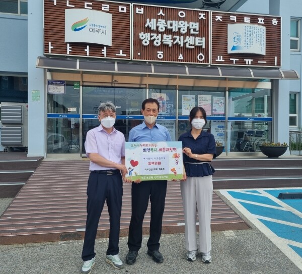 또한 전달받은 이웃돕기 성금 100만원은 세종대왕면 희망온누리 계좌로 입금해 관내 취약계층을 지원하는데 쓰일 예정이다.
