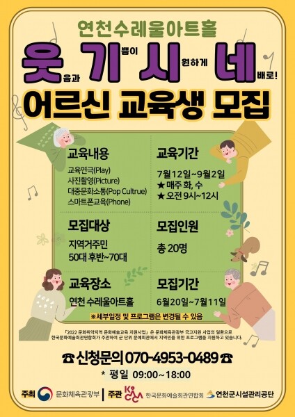 교육생 모집기간은 6월 20일부터 7월 11일까지 전화로 하면 된다.