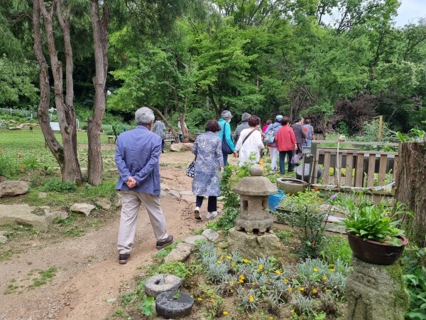 28일 1회차 활동에서는 식물에서 찾은 쪽 염료를 통해 티셔츠, 스카프 등의 생활소품 천연염색 체험을 진행했으며 프로그램에 참여한 어르신들은 완성된 서로의 작품을 감상하며 치유정원에서 쉼과 나눔의 시간을 가졌다.