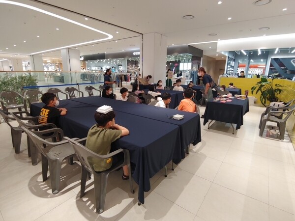 이날 어린이들은 다양한 색의 자투리 가죽 도안을 이용해 작품을 만들고 보호자들은 쇼핑과 휴식을 즐기는 등 여유로운 시간을 가졌다.
