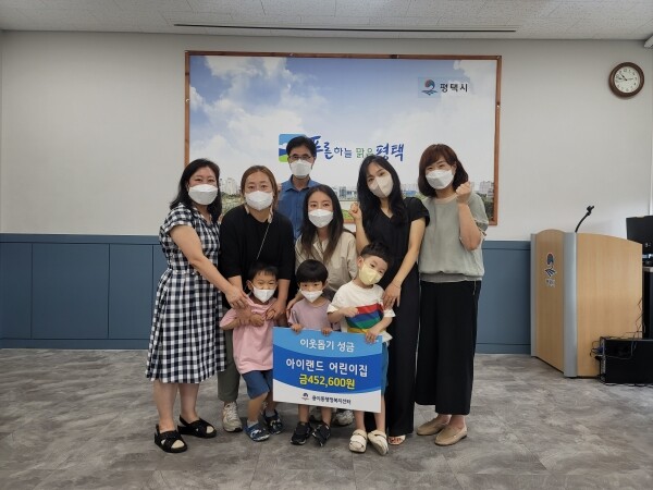 아이랜드 어린이집 원생들과 학부모, 교사 등이 직접 바자회를 열어 얻은 수익금으로 기부금을 마련했으며 성금은 경기사회복지공동모금회의 용이동 지역사회보장협의체 기금에 적립돼 저소득층 지원 사업에 쓰일 예정이다.