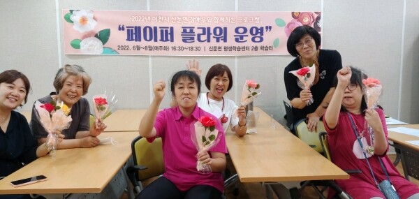 페이퍼 플라워는 이천시 장애인프로그램의 일환으로 신둔면에서는 장애우와 일반인이 서로 도와가며 친목하고 우리주변의 장애인에 대한 편견과 오해를 이해와 협력으로 함께 어울리며 참여자들의 호응을 얻고 있다.