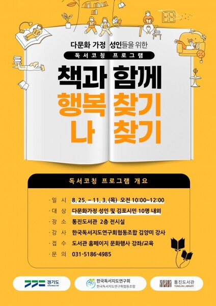 참여 신청은 7월 4일부터 도서관 누리집을 통한 온라인 접수로 진행하며 자세한 사항은 김포시립도서관 홈페이지를 참고하거나 통진도서관으로 문의하면 된다.