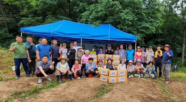 단천1리 면민 40여명이 이른 새벽부터 함께 모여 재배한 감자를 수확하고 마을 어르신들과 마을의 소외계층에게 감자를 전달하며 진정한 나눔 실천의 장을 조성했다.