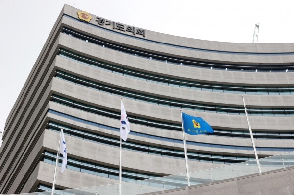 의회는 이날 오후 도와 의회를 잇는 4층 테라스 전면부에 설치된 ‘경기융합타운 통합 국기 게양대’에 국기 등을 처음으로 게양했다.
