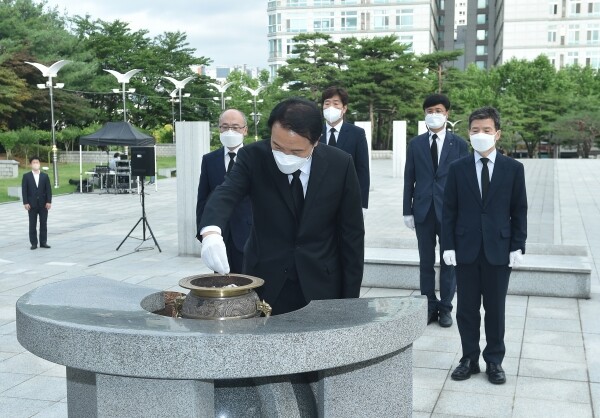 임 교육감은 방명록에 “님들의 뜻을 받들겠습니다 자율·균형·미래 새로운 경기교육”이라고 남겼다.