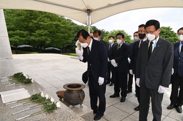 현충탑 참배에는 시청 간부 공무원들과 인수위 분야별 위원장 등이 함께 했다.