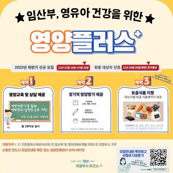 대상자는 의정부시에 주소를 둔 기준중위소득 65% 이하 가정의 임산부, 출산·수유부나 66개월 이하 영·유아이다.
