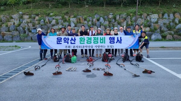 거리두기 해제 이후 등산객이 늘어나 등산객의 편의와 쾌적한 환경 조성을 위해 운사모 회원 20명이 운악광장 주변에 있는 잡목과 잡초를 제거하는 등 구슬땀을 흘렸다.