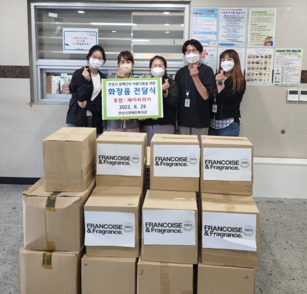 ㈜제이씨와이는 안성시 지역사회 장애인들의 미용 관리에 도움이 될 수 있도록 나눔을 실천하고자 후원 물품을 전달했다고 밝혔으며 안성시장애인복지관은 이날 전달받은 물품을 안성시 지역사회 내 장애인 가정에 전달할 계획이라고 전했다.
