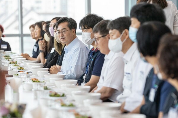 김동연 지사는 4일 오전 청원경찰, 방호원, 미화원 등 청사 근무직원 36명과 식사를 하고 대화를 나눴다.