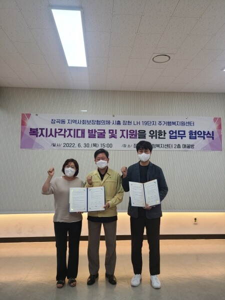 천덕자 장곡동 지역사회보장협의체 민간위원장은 “이번 협약은 경제적 문제뿐만 아니라 고독사·아동학대 등에도 지역사회의 관심과 실천의 범위를 넓히는 계기가 될 것”이라며 “앞으로도 지역 내 복지사각지대 해소와 복지 증진을 위해 고민과 발전을 멈추지 않겠다”고 다짐했다.