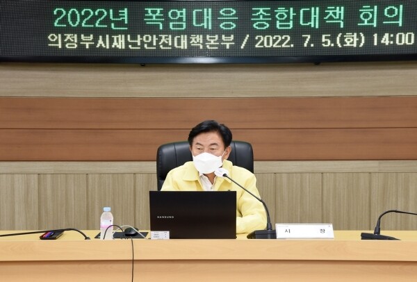 김동근 시장은 시청 재난상황실에서 폭염 등 여름철 자연재난 긴급대책회의를 주재, 폭염특보 현황과 피해·대처상황 등을 점검하고 협업 사항을 논의했다.