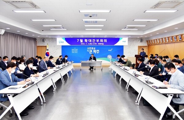 끝으로 모든 공직자는 파주시정의 든든한 파트너로 시민만 바라보고 파주시의 성공을 위해 적극 노력해 줄 것과 100만 파주시 발전을 위해 적극적인 행정을 펼칠 것을 당부했다.