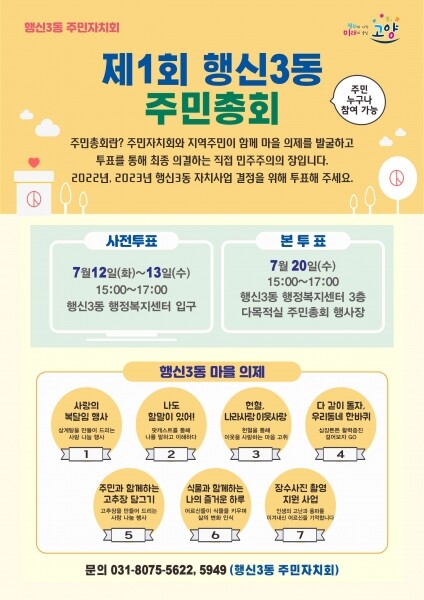올해 첫 회를 맞는 행신3동 주민총회는 주민의 참여도 제고를 위해 주민총회에 앞서 사전투표를 시행한다.