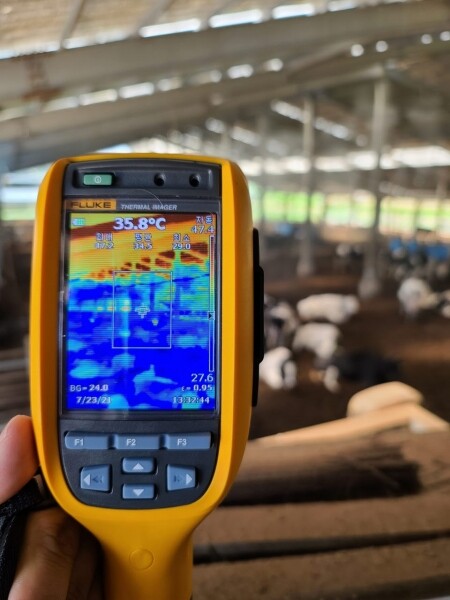 고온기 환경온도를 낮추기 위해서는 송풍팬 가동, 지붕 물 뿌리기, 차광막 설치, 적정 사육두수 유지 등의 노력을 기울여야 한다.